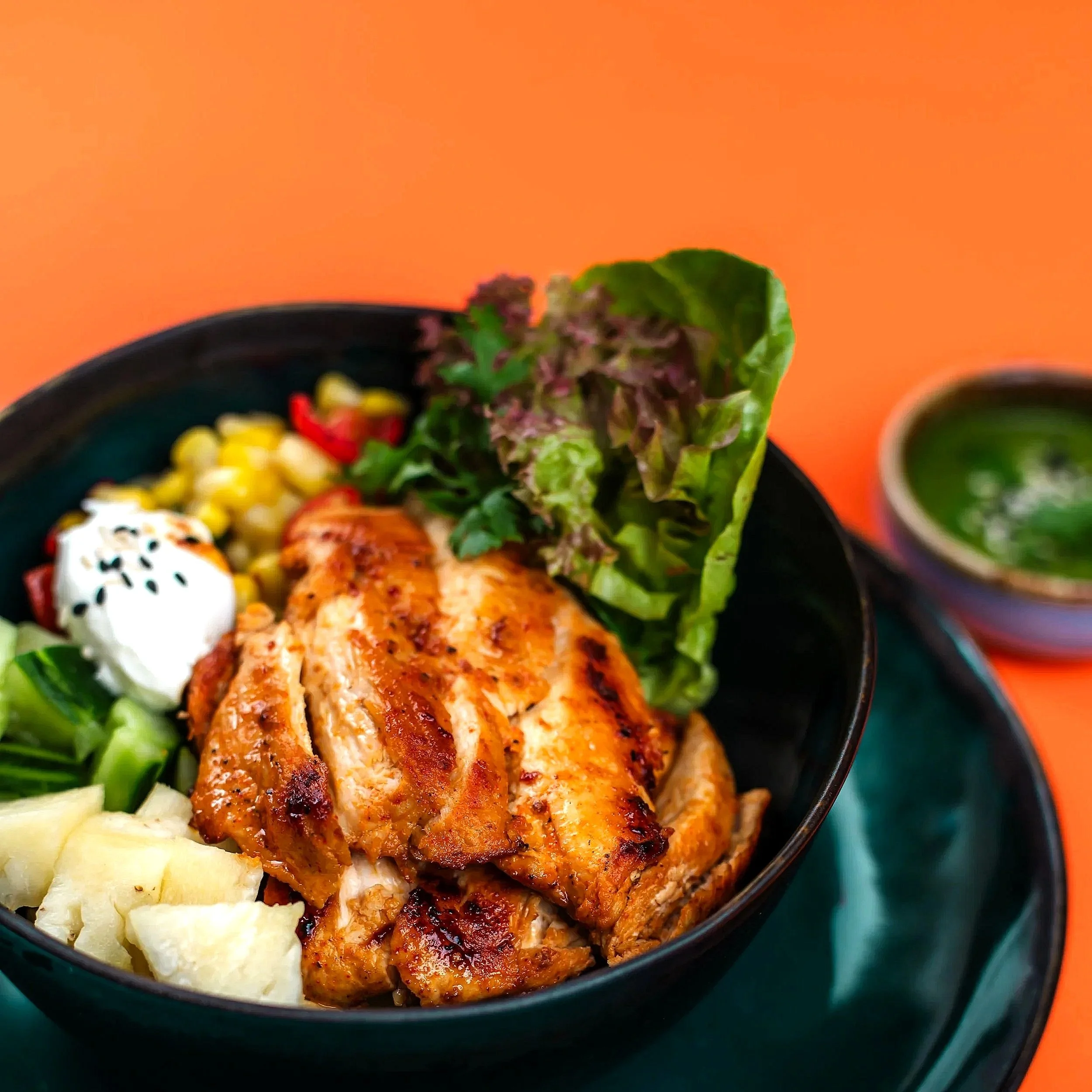 Choose your base, protein, toppings, and sauce to match your preferences and nutrition goals.